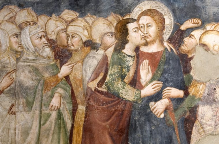 العمل الفني: قبلة يهوذا ، لوحة جدارية تعود إلى القرن الرابع عشر للرسام تريسينسكو في ساكرو سبيكول.