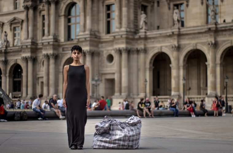 Dress – Vintage; Bag – Tati; Earrings, shoes: Juliana’s own. At Louvre Museum, Paris