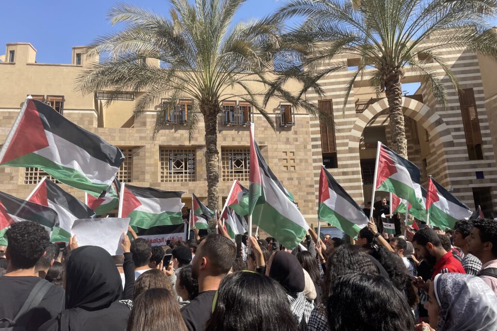 احتجاجات في الجامعة الأميركية بالقاهرة، مصر. تصوير المؤلّفة في أكتوبر 2023