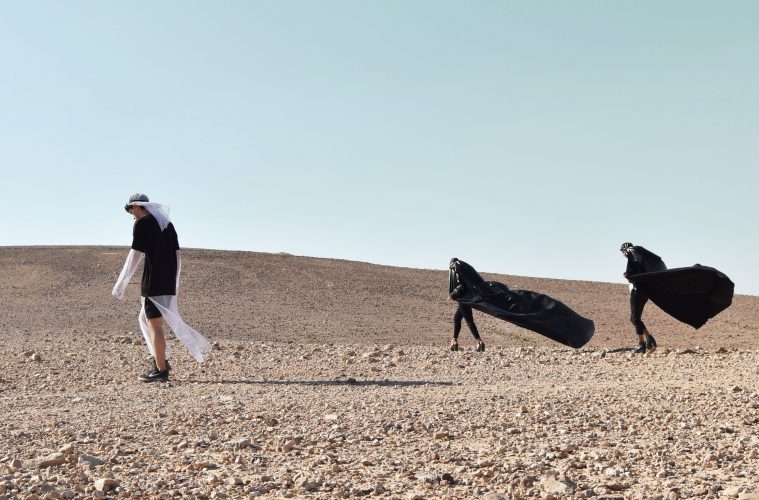 Desert Eagle encompasses the borderless bond between separated artists via the internet. Moreover, the eagle symbolizes the ability to thrive, express, and survive as an individual entity. tRASHY CLOTHING and Fadi Zumot intended for this collection to raise awareness on the topic of censorship, borders and segregation. To portray separation means such as fences and borders, metallic fabrics, neon accessories, and eye-catching shades were used to compose this collection. The collection is a representation of the different lives and backgrounds of tRASHY’s team. In all, the collection scratched the surface on introducing the Middle Eastern artistic identity in Europe by presenting it in Berlin Fashion Week last July 2018 – Funded by the Prince Claus Fund For Culture And Development – with the new team of tRASHY CLOTHING consisting of Luai Al-Shuabi, Sereen Khass, Reem Kawasmi, Omar Braika, and Shukri Lawrence.