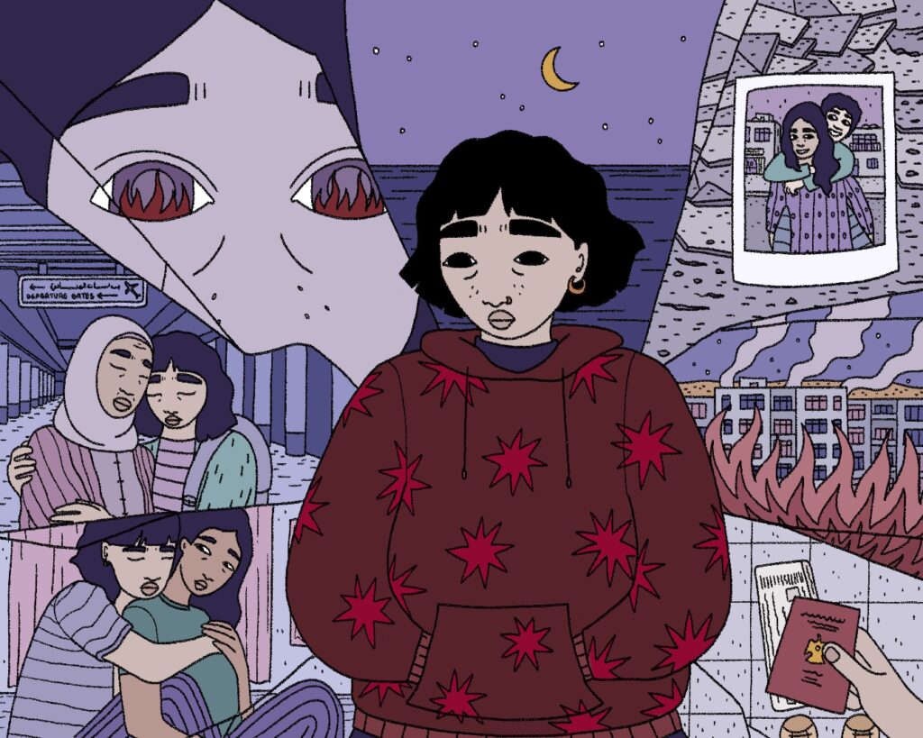 What ties them together is not only trauma, but the way the world has carved borders into their lives. Borders between safety and danger. Between home and exile. Between being seen and being erased. Visibility can bring recognition, community, even fleeting safety, but in contexts where queerness is criminalized, it also invites surveillance, harassment, or attack. Erasure, on the other hand, means survival through silence and invisibility, but at the cost of isolation and self-denial. These dynamics are seen in the queer Arab glossary spaces too — when some terms are reclaimed, others are censored.